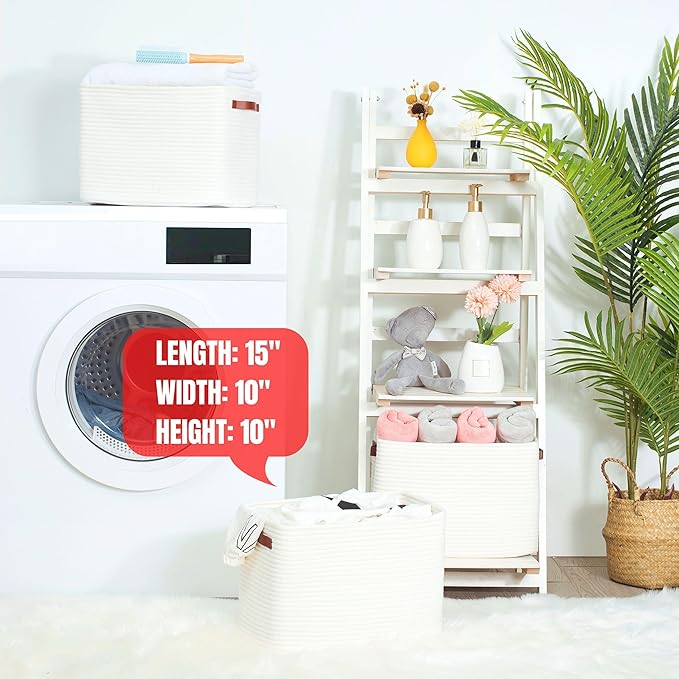 - Decorative Cute Woven Baskets - A stylish and practical way to create eye-catching table and counter-top displays. Not only will our basket set help you get organized, but their sleek, sophisticated shape and neutral color will complement any decor. Put them on a nightstand, a bedside table, a nursery side table, walk-in closet, shelves, kitchen countertop, or bathroom vanity top to add character to your rooms while keeping everything organized.