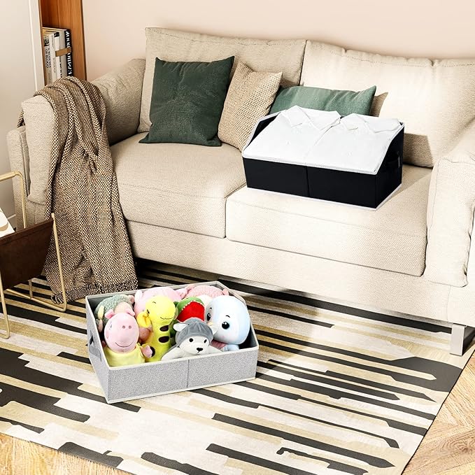 - Multipurpose Cubes: Measuring 16.53" L x 11" W x 7.87" H, these decorative storage boxes are ideal for storing clothes,towels, books, yarn, etc. Our fabric storage bins suitable for living room, bedroom, office, closets
