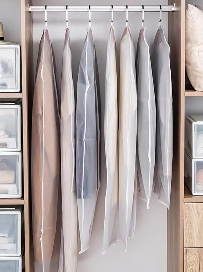 - ✅【DUST-FREE GARMENT COVER】: keep your favorite & expensive clothes dust-free and fresh. With these Garment Bags for Hanging Clothes, each of your suites or dresses can have its own cover and room to breathe. The translucent garment bag can be folded in a small size easily, is very easy to store when you don't use them, and save lots of space.