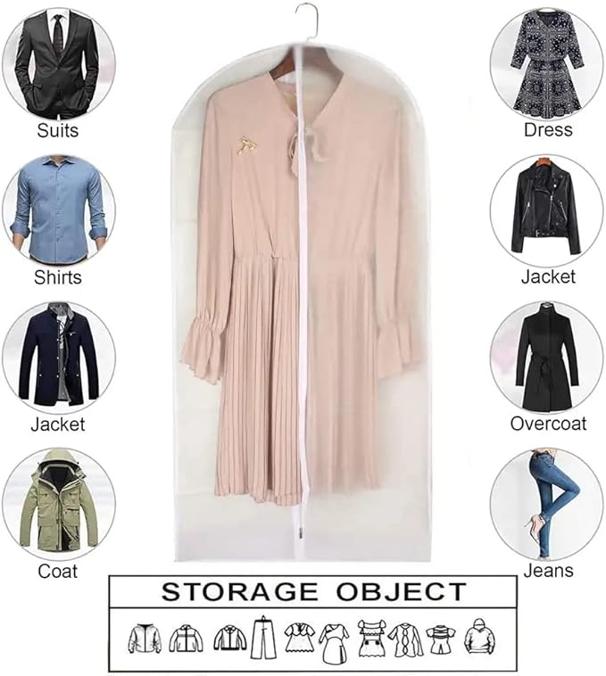 - ✅【VERSATILITY】: These garment covers bags are great for business suits, dresses, coats, fur coats, uniforms, blouses, tops, skirts, pants, and slacks. These clothing protectors hanging garment bag offer helps keep clothing clean and wrinkle-free. Fits both Men’s and Women’s apparel.