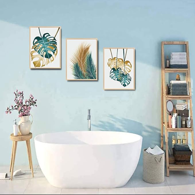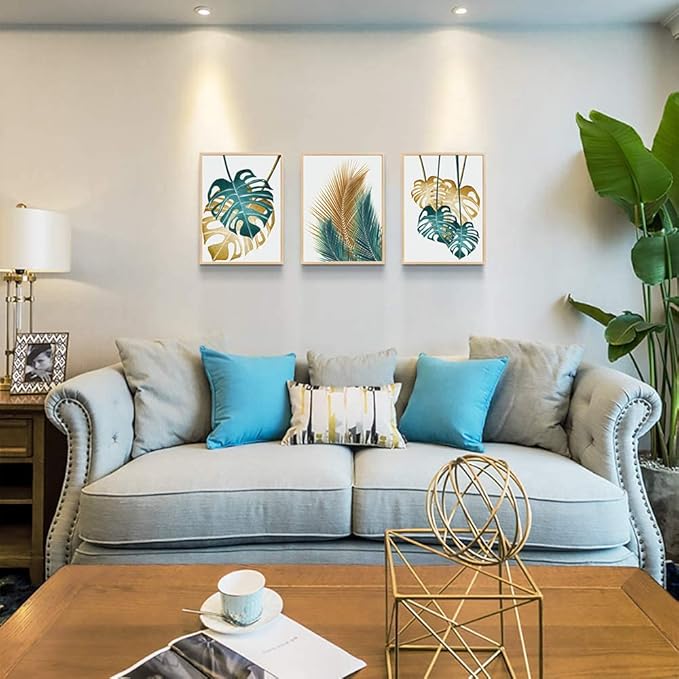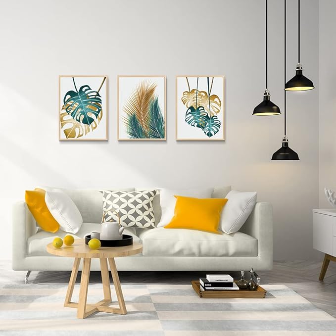 Natural Wood Framed Wall Art For Living Room Wall Decorations For Bedroom Kitchen Wall Decor Dining Room Abstract Painting Leaves Wall Pictures Artwork Bathroom Home Decor 3 Piece Framed Art Prints