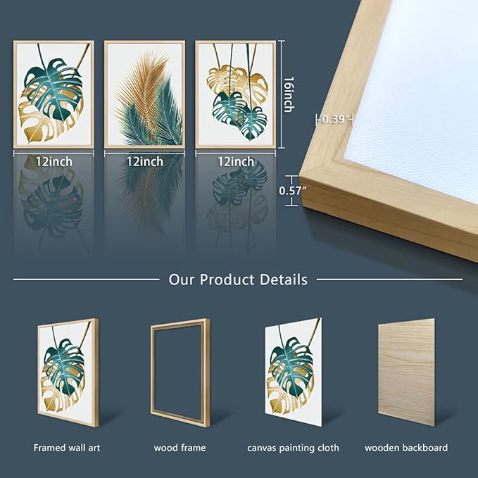 - 【FRAMED CANVAS WALL ART SIZE】Size Is :12x16inch (30x40cm)(Including The Outer Frame), total 3 Panels. Natural Wood Framed Wall Decor Art Wood Frame wall art。