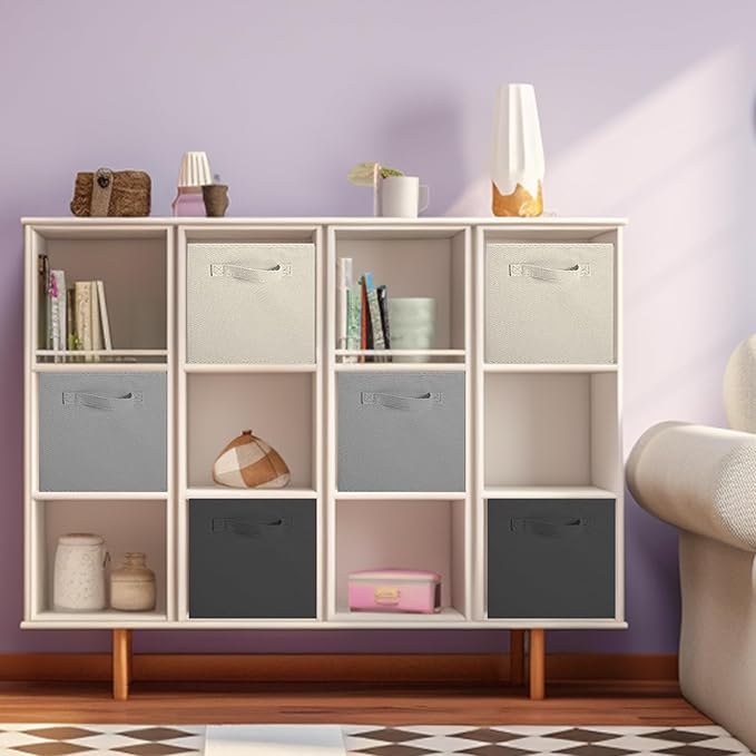 ShellKingdom Foldable Fabric Storage Cubes - Cloth Organizer Drawer for Closet & Toys, 6 Pack (Black, Beige, Grey)