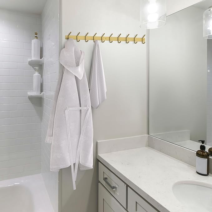 - ✅【Elegant Brushed Gold Finish】Add a touch of luxury with this modern brushed gold coat rack wall mount that elevates any space, from entryways to bathrooms.