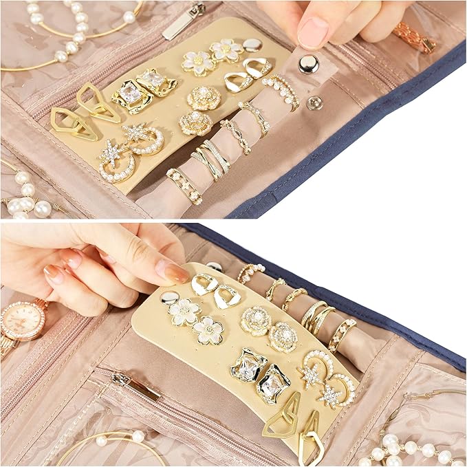 - PRACTICAL: Each area has a protective design to prevent your jewelry from falling out of the bag. In addition, there are multiple universal zipper pockets to store anything you need