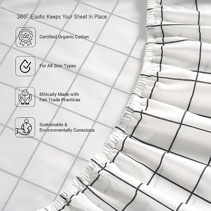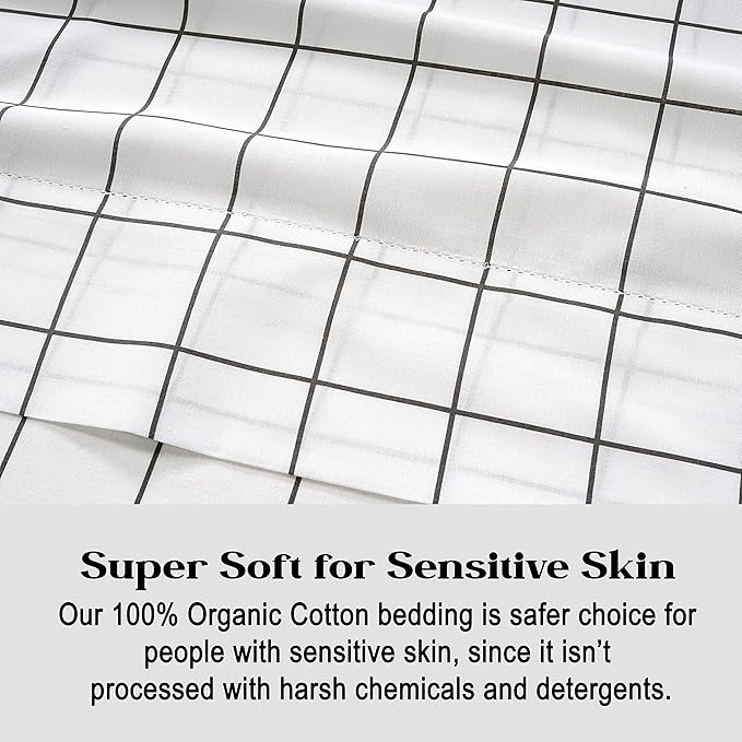 LANE LINEN Fitted Sheet King Size, 100% Organic Cotton, 3-Piece Set (1 Fitted Sheet,2 Pillowcases), Percale Weave, Ultra Soft, Breathable,Fits Mattress Upto 15" Deep - Windowpane(No Flat Sheet)
