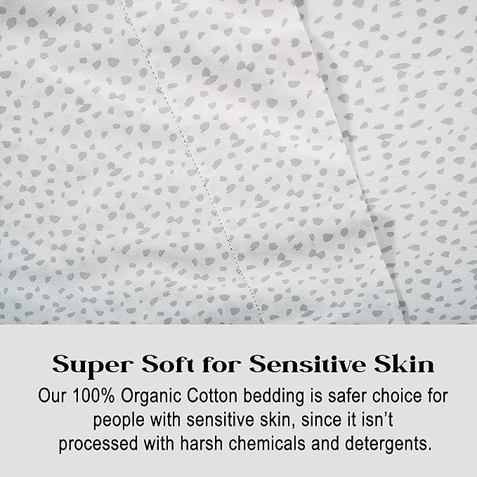 LANE LINEN Twin XL Fitted Sheet, 100% Organic Cotton 2-Piece Set (1 Fitted Sheet, 1 Pillowcase), Percale Weave, Soft, Breathable, Fits Mattress Upto 15" Deep - White (Grey Dot)(No Flat Sheet)