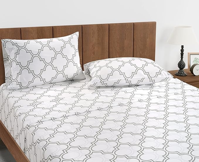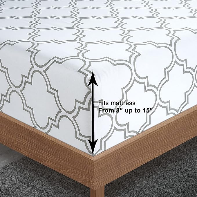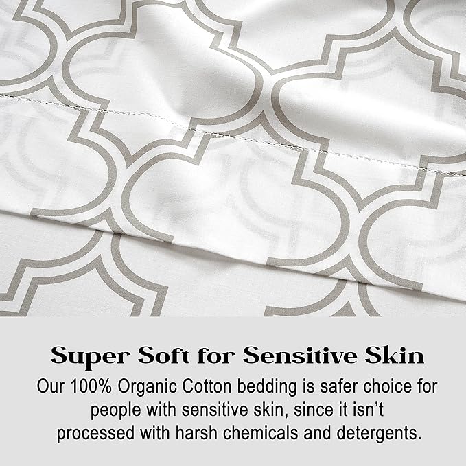 LANE LINEN Twin XL Fitted Sheet, 100% Organic Cotton 2-Piece Set (1 Fitted Sheet,1 Pillowcase),Percale Weave,Bottom Sheet, Soft, Breathable,Fits Mattress Upto 15" Deep - Trellis Silver(No Flat Sheet)