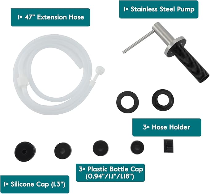 - No More Messy Refills: Our sink soap dispenser pump is equipped with a 47" extension tube, you can insert the tube directly into the large dish soap dispenser. No need to refill small canisters anymore
