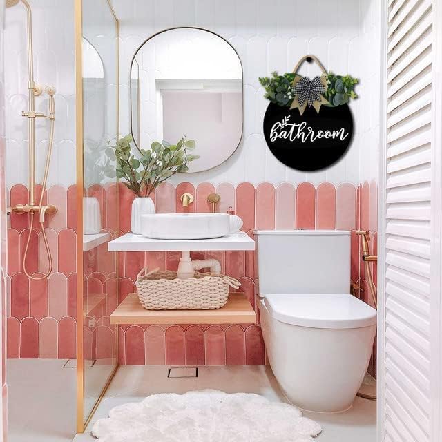 Bathroom Wall Decor,Bathroom Sign,Rustic Round Wooden Wreath Sign,Bathroom Wooden Wall Sign for All The Seasons