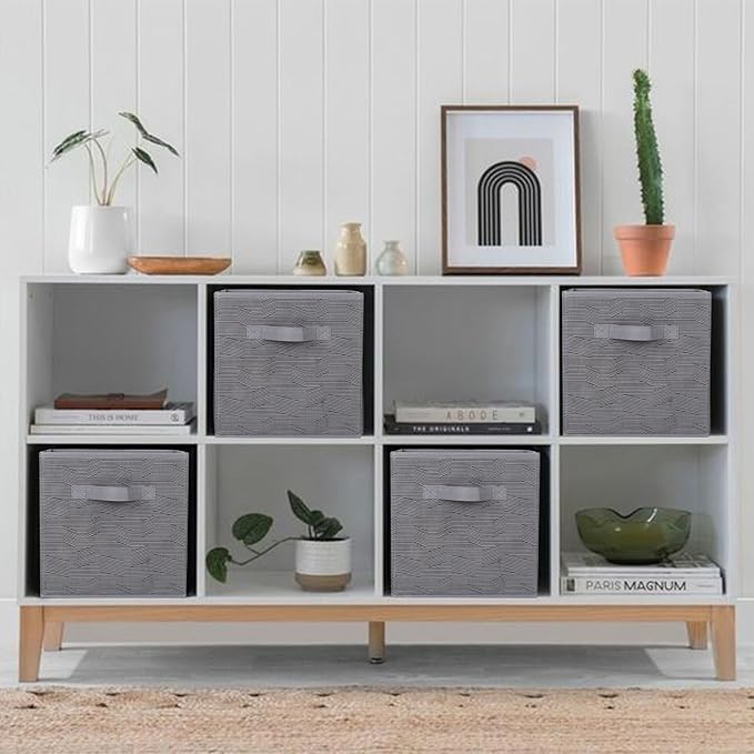 - DESIGN SPECIFICATIONS: The cloth storage bins are made of heavy-duty polypropylene material with extra cardboard support — Complements cube storage organizer shelves — Measures approximately 10.5x10.5x11 IN