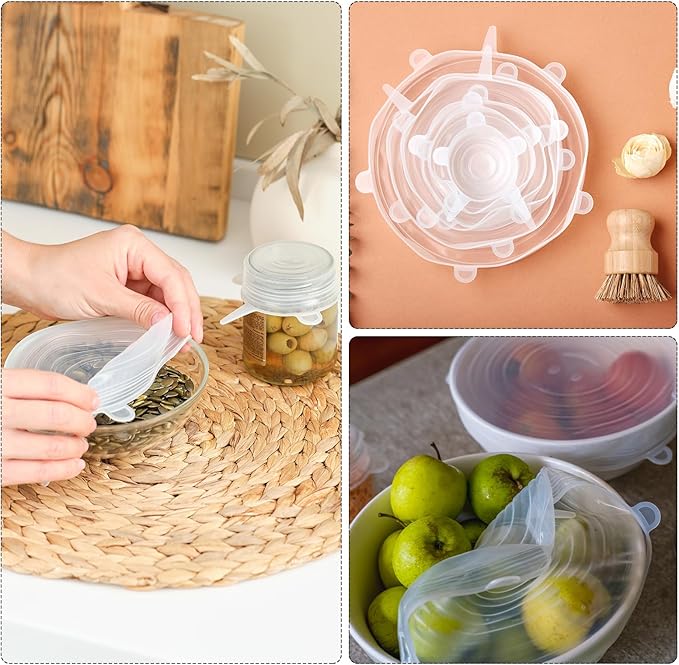 - [Airtight Seal] - With its airtight seal and strong adsorption, the silicone food cover can cover tightly to keep food fresh longer and prevents spilling and bad odors. These silicone stretch lids are elastic, the mouth of the bowl or cup should be a little larger than the size of the lid so that they can stretch for a tight seal.