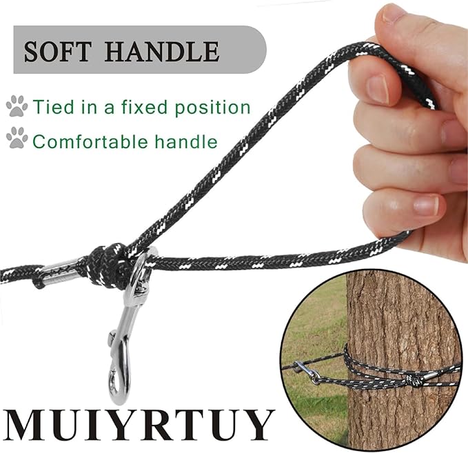 - [Safety design] There is a safety hook on both ends of our cat leash. The 360° rotating buckle design prevents your dog from being restricted when moving left and right, and will not mess up the leash. Enjoy the peace of mind leash attachment with our 360° rotation, allowing your pet to move freely around you. You can also tie one end to the trunk to release your hands. Heavy-duty buckle makes it high tensile strength and not easy to fall off.