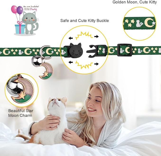 - 【Moon Star Pendant】Our kitten collars with lovely Moon Star pendant makes your cat always stands out strikingly, An ideal gift for your cat definitely.