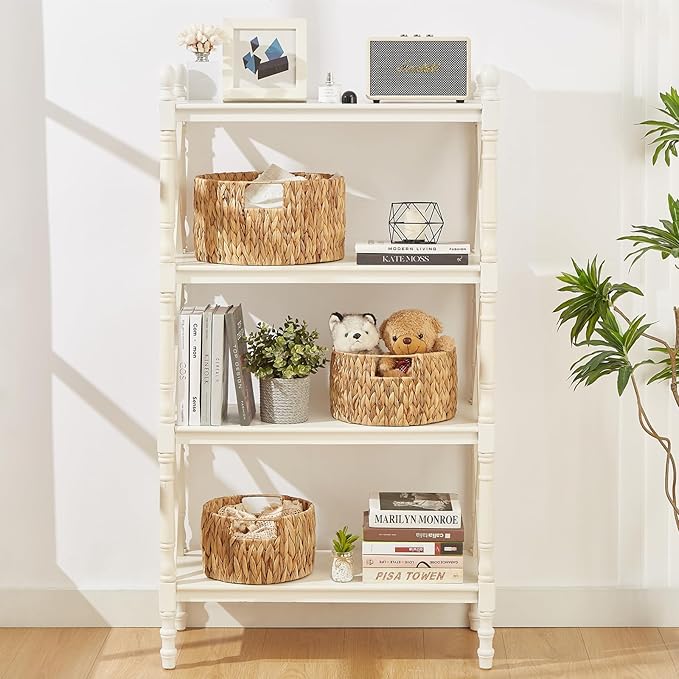 - 【NATURAL & DURABLE MATERIAL】Set of 3 Round wicker baskets are hand-woven with 100% natural water hyacinth by our skilled artisans. Baskets for organizing are constructed with a sturdy metal frame inside for durability