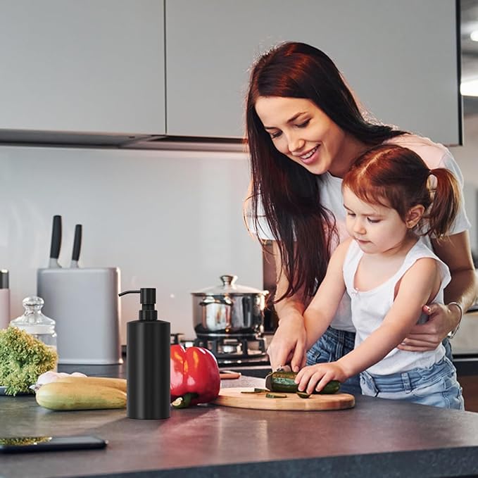 - ELEGANT ACCESSORY - The matte black soap dispenser is an elegant and practical accessory made with a commercial grade 304 stainless steel exterior and a durable ABS interior. Its perfectly sized bottle provides clean and organized look to countertop