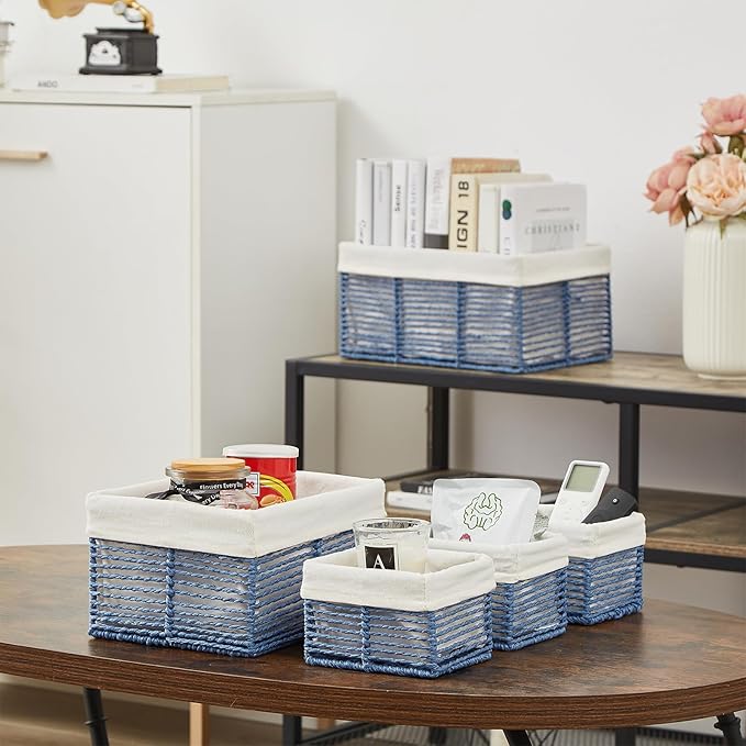 Vagusicc Wicker Storage Basket, Hand-Woven Paper Rope Wicker Baskets, Rectangular Small Wicke Baskets for Organizing, Cube Storage Bins for Closet/Clothes/Dresser, Blue, 5-Pack