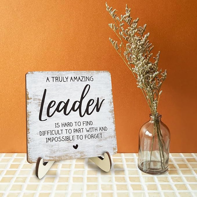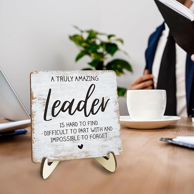 Decorative Desk Decor Motivational Leader Gift Positive Thank You Gifts Appreciation Plaque with Wooden Stand Inspirational Wood Sign for Boss Mentor Leader Coworker Home Office Table Bookshelf