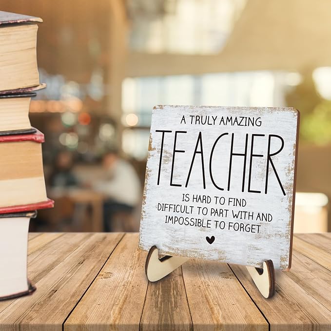 Decorative Desk Decor Motivational Teacher Gift Positive Thank You Gifts Teacher Appreciation Gifts Plaque with Wooden Stand Inspirational Wood Sign for Coach Teacher Coworker Home Office Table Shelf