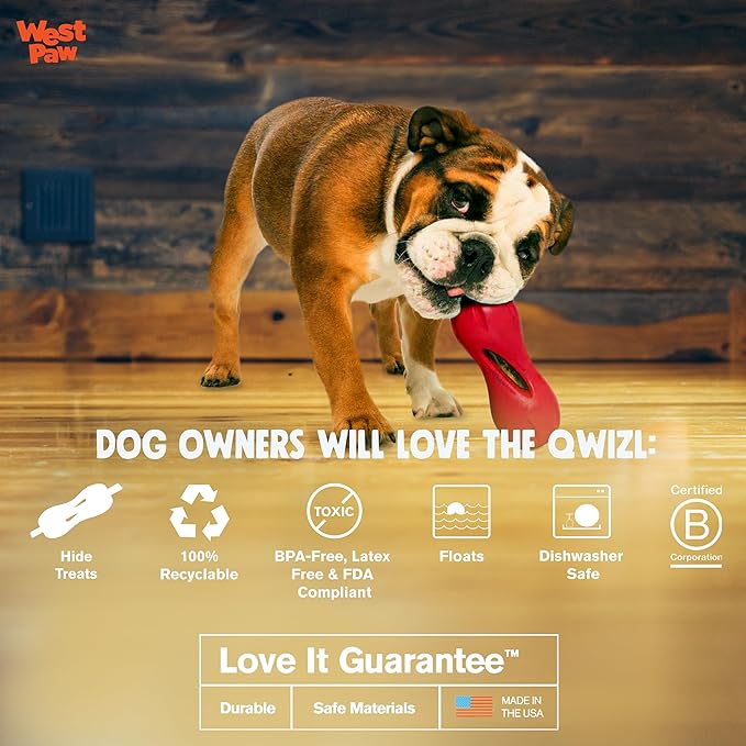 WEST PAW Zogoflex Qwizl Dog Puzzle Treat Toy – Interactive Chew Toy for Dogs – Dispenses Pet Treats – Brightly-Colored Dog Enrichment Toy for Aggressive Chewers, Fetch, Catch, Small 5.5", Ruby