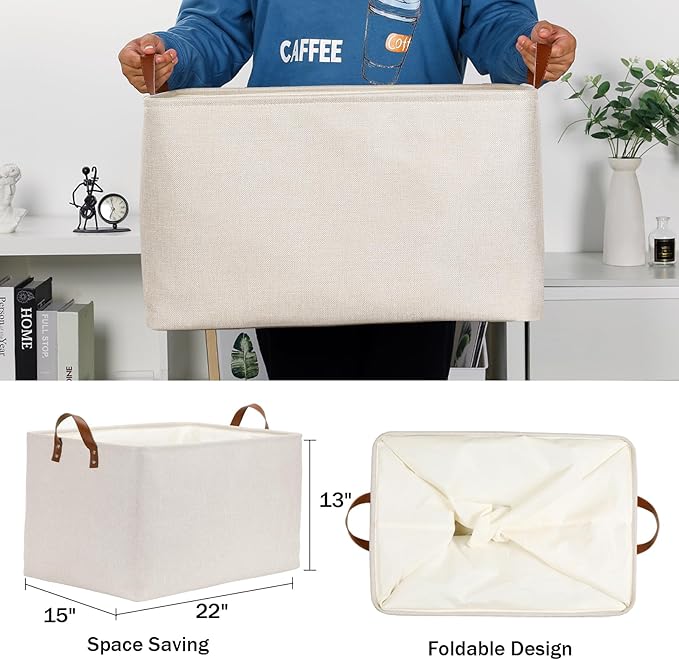 - 【Unique Design & Modern & Decorative】Set of 2 large storage baskets, dimensions(each): 22(L) x 15(W) x 13(H) inches. Fabric baskets for organizing bring you organizing convenience and a sweet home. Great for socks, underwear, books, magazines, toys, baby clothes, pet products, wipes, towels, decorations, office supplies, DVDs, and gifts. The Large Fabric baskets with neutral colors can match a lot of home styles - keeping your home nice and tidy.