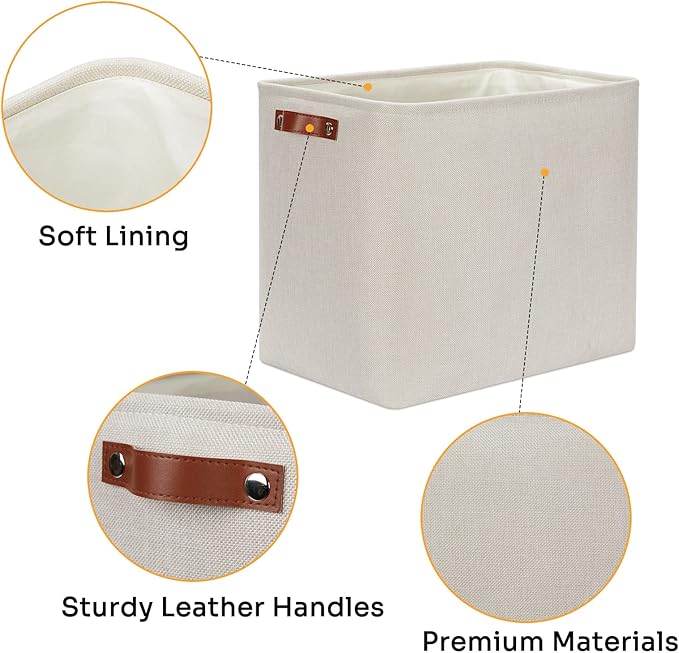 DULLEMELO Extra Large Storage Baskets, Fabric Storage Bins for Organizing Shelves Nursery Toys Books, Closet Baskets and Bins with Handles, Beige, 2-Pack
