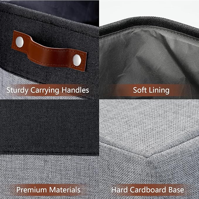 DULLEMELO Extra Large Storage Baskets, Fabric Storage Bins for Organizing Shelves Nursery Toys Books, Closet Baskets and Bins with Handles, Black&Grey, 2-Pack