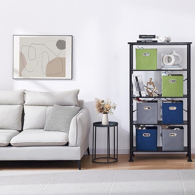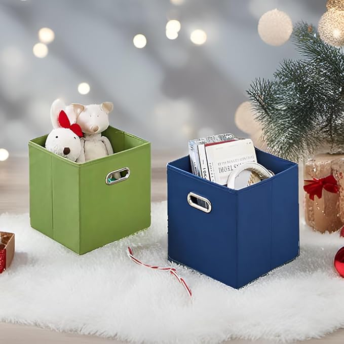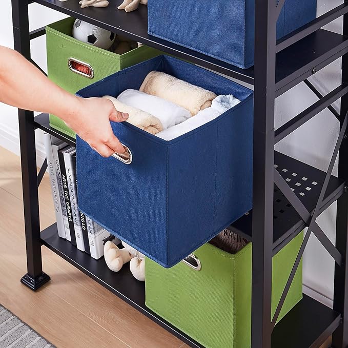 11 Inch Fabric Collapsible Storage Cubes,6 Pack Colored Closet Storage Bins with Metal Handles Foldable Cube Baskets for Organizing Clothes, Toys, Books(Green, Gray, Dark Blue)