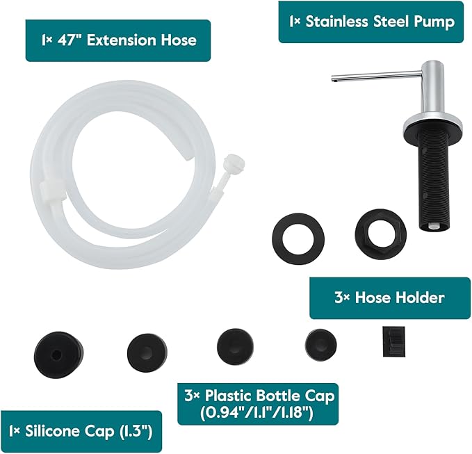 - No More Messy Refills: Our sink soap dispenser pump is equipped with a 47" extension tube, you can insert the tube directly into the large dish soap dispenser. No need to refill small canisters anymore