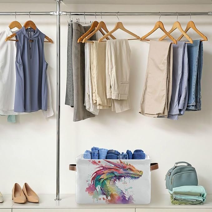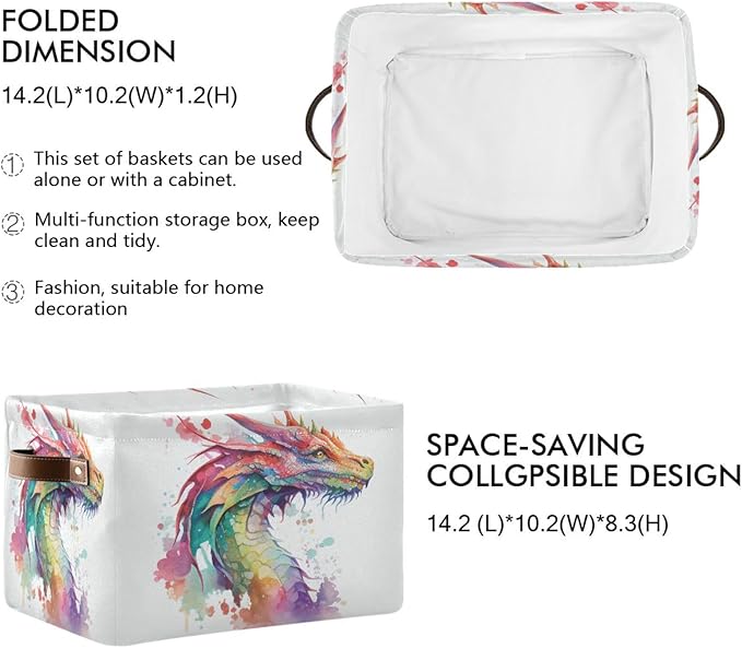 Large Storage Basket Watercolor Dragon Cube Storage Bin Canvas Fabric Organizer Handles Collapsible for Clothes Toys Bedroom Decorative