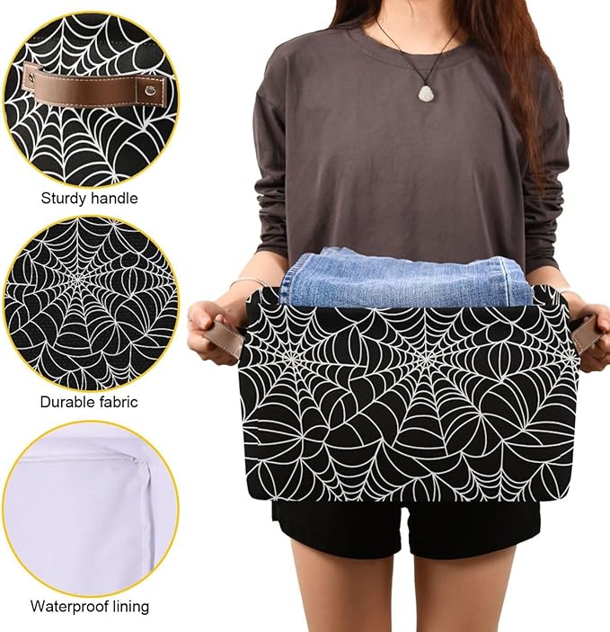 Halloween Spiderweb Large Storage Basket Cube Storage Bin Canvas Fabric Organizer Handles Collapsible Decorative for Clothes Toys Bedroom