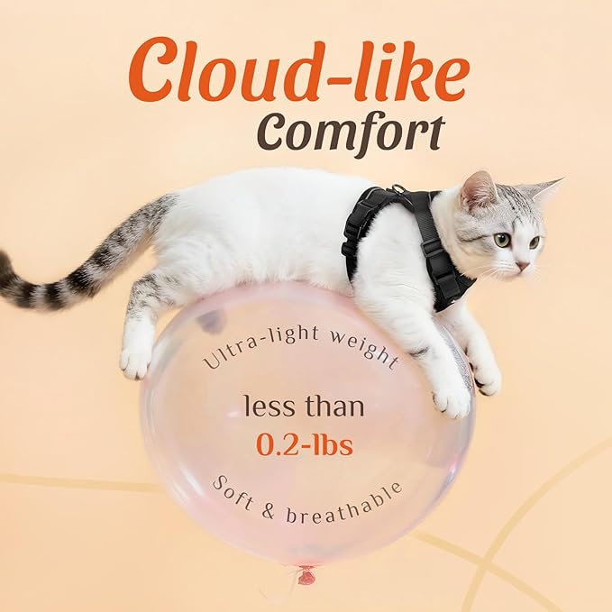 - Super Soft & Breathable Material - Made from breathable, comfortable mesh fabric with foam padding and soft edges, this lightweight cat harness allows your cat to move freely and stay cool and comfortable while exploring outdoors.