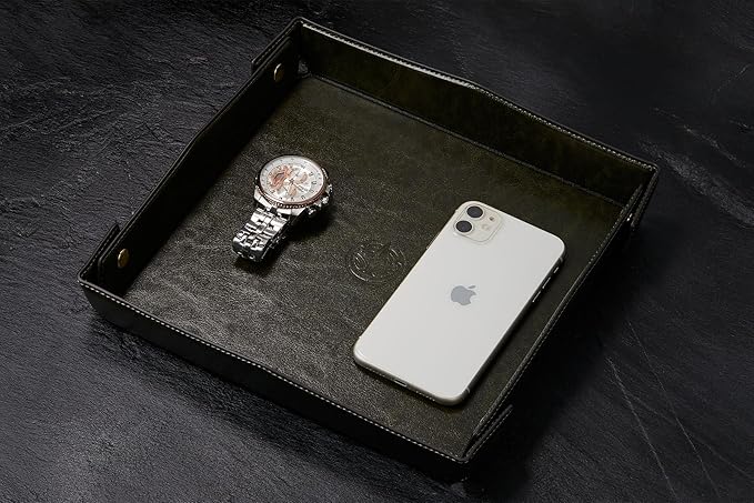 - Generously Sized for Convenience: At approximately 10.55 x 10.35 x 1.77 inches, it provides ample space to gracefully organize and store your watches, keys, wallets, and jewelry, keeping your essentials within reach.