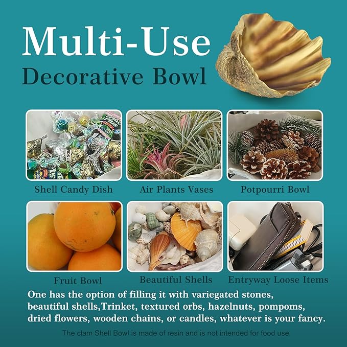 - 【Versatile Decor】Golden Large Clam shell decorative bowls available in two size and multiple colors to hold nice amount of objects for any season - Christmas, fall, Thanksgiving,Birthday Party, Daily Decoration.Share with your family members, friends, colleagues and nautical lovers