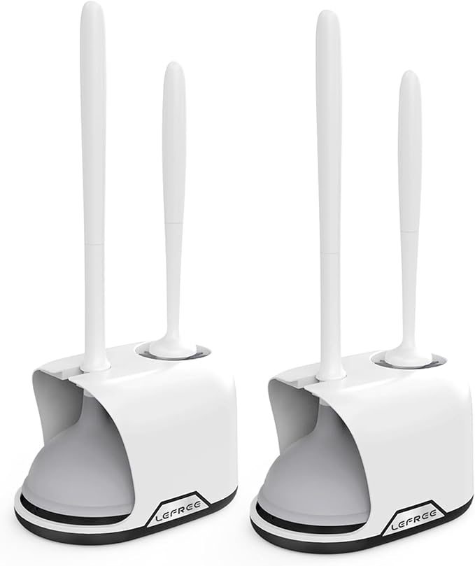 Lefree, 2 in 1 Toilet Brush and Plunger Set with Silicone Bristles, Plastic Material, Includes Holder, White/Black, for Deep Cleaning
