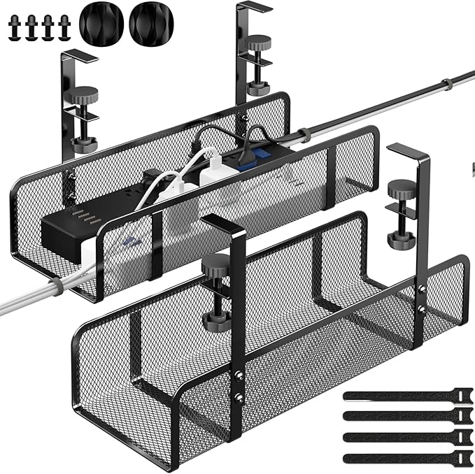 - 【Ample Storage Space】Our cable management under desk tray can accommodate power strips up to 15.7 inin length and 4.7 in 2.9 in width. Unlike other mesh cable management trays in the market that can only hold one power strip, our tray allows you to store TWO SMALL POWERSTRIPS simultaneously.The under desk cable management tray provides not only a secure and discreet solution but also ample space for your cable organization needs.