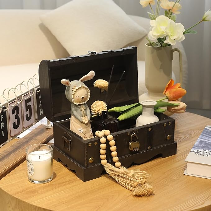 - Spacious Storage: With dimensions of 12.2" x 7.1" x 7.1", this decorative wooden trunk provides ample space for storing various items, such as jewelry, keepsakes, documents, and more.