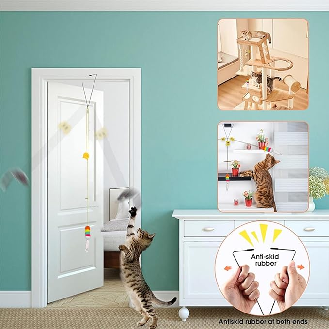 - A great Gifts for your lovely cat, Perfect for Stimulate cat entertainment: door cat toys will make cats crazy,hanging cat toys have a separate set of string, you can hang them all up for cats to play, feather cat toys are an irresistible cat toy for cats, you can also use catnip, it will be more effective when added to cat toys, it will make cats stimulate the "hunting nature", use it to prevent cats from destroying furniture such as sofas and window curtains.