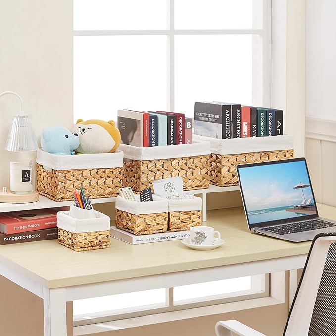 Vagusicc Wicker Storage Basket, 6 Pack Baskets for Organizing, Water Hyacinth Storage Basket, Rectangular Wicker Baskets for Storage Shelves, Cube Storage Bins For Closet/Clothes/Dresser