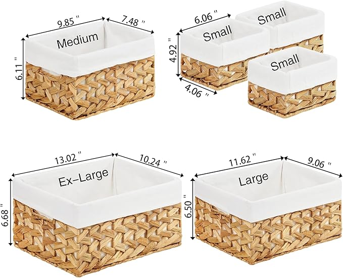 - 【Product Dimensions】1-XL 13.02 x 10.24 x 6.89 inches, 1-L 11.62x 9.06 x 6.50 inches, 1-M 9.85 x 7.48 x 6.11inches, 3-S 6.06 x 4.92 x 4.06 inches. The storage organizer baskets with 12-Month Quality Guarantee, If you have any questions, please feel free to contact us!