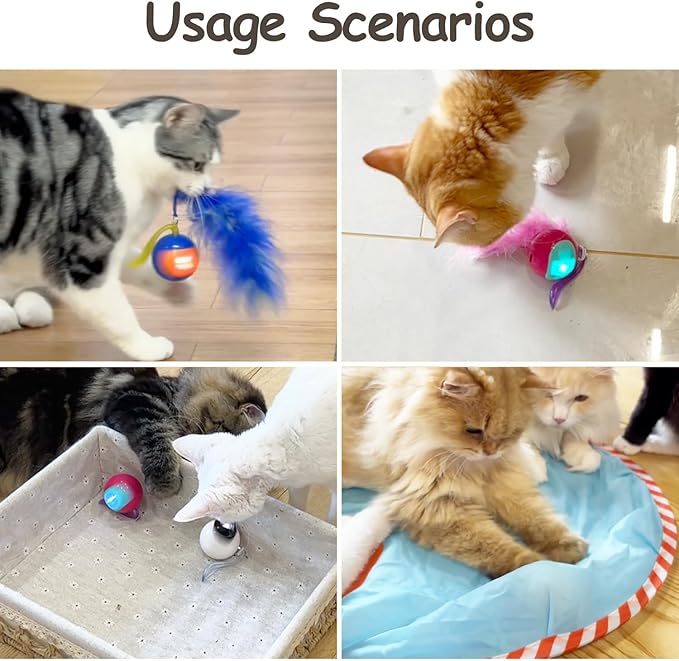 - 【Create a Distinctive and Entertaining Experience】: the toy allows you to attach accessories fluffy tail, small mice or your cat's other favorite toys to the rolling ball, creating a combination of active toys that can enhance your cat's playtime. The rolling ball provides a dynamic and interactive play experience,