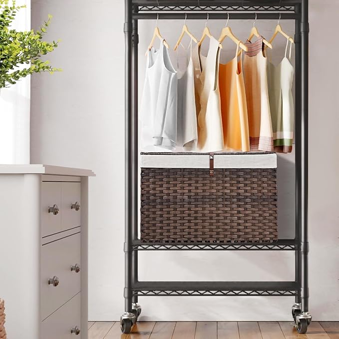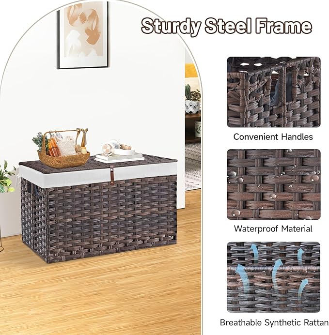 - Sturdy & Handmade: Crafted with a sturdy steel frame and synthetic rattan, this spacious storage bin with lid is stable, waterproof, breathable, and can stay dry in humid environments. Since it is handmade, each piece is unique