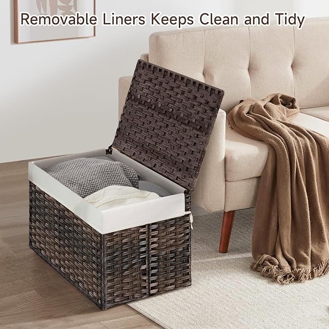 - 180L Large Capacity & Versatile Use: The size of storage basket with lid: 31.5"L x 17.72"W x 19.68"H. The max capacity is about 180L(47.6 Gallons). this storage basket can accommodate a multitude of items, from blankets and pillows to toiletries and in the closet for seasonal clothing. It can also serve as a storage trunk in room