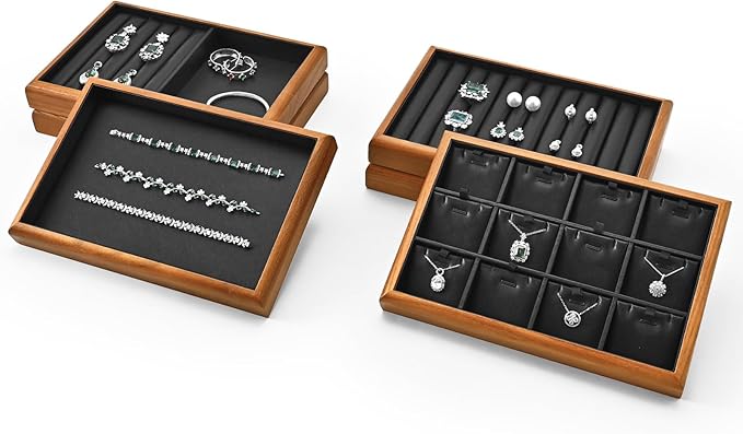 - ★Application:This solid wood jewelry tray is great for personal use at home,which can be stacked on your drawer or dresser to save space; And perfect for a countertop jewelry display in stores or trade shows. Easily mobile the tray from the showcase to allow customers to view your jewelry from the counter-top