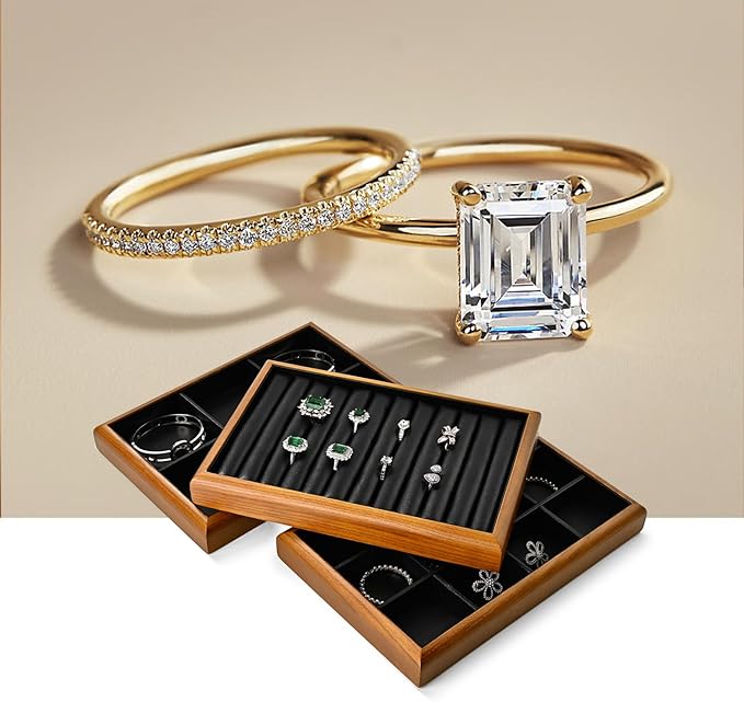 - ★Release the maximum beauty:Solid wood and black design clash for texture, black lining will not hide the color of the jewels, put the jewels in this jewelry tray, the charm of the jewels will be infinitely amplified!