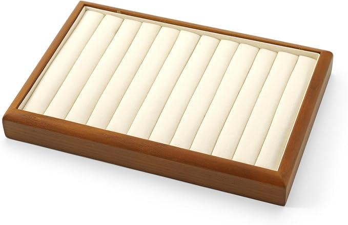 Oirlv Solid Wood 11 Slots Ring Tray Jewelry Organizer Tray Jewelry Drawer Organizer(Creamy-white)