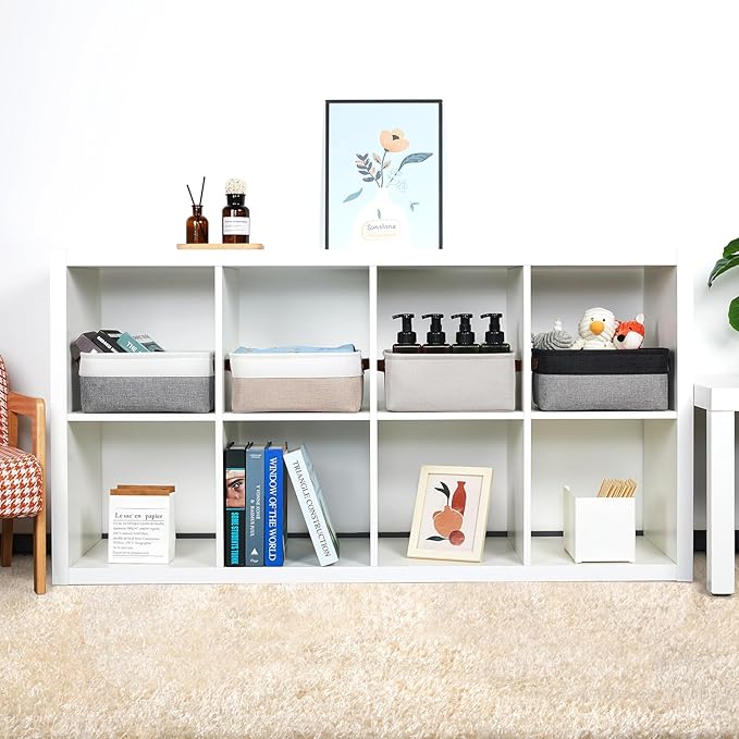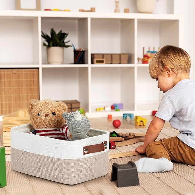 - Premium Material: These canvas storage bins are made with premium-quality fabric and thickened EVA. Soft&comfortable, sturdy&resistant, lightweight, and easy to use over time. The fabric storage baskets are more suitable for storing towels and baby clothes.