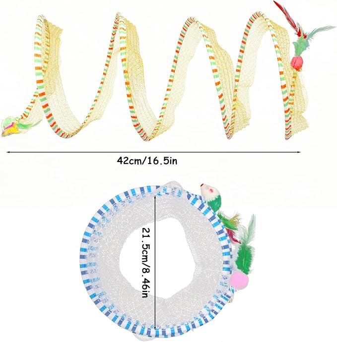 - [Keep Your Pet Active]: Fun toy for cats to play, our kitty tunnel offers the most interactive fun with the plush and feather toys on the exits and import, truly a great way to encourage daily exercise and keep your pet active. Provides hours of exercise & self-amusement