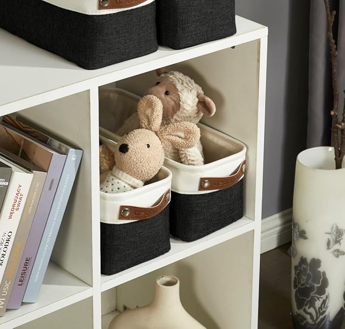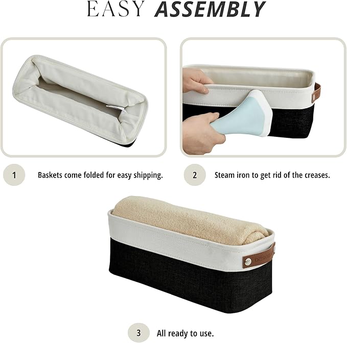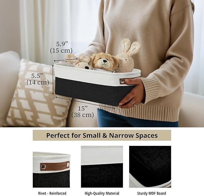 DECOMOMO Narrow Storage Bins Small Baskets for Organizing Bathroom, Toilet Tank, Towel Storage, Entryway, Gifts (Black and White - Set of 4)