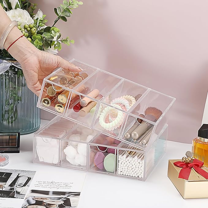 - Multifunctional: 4 drawers design provide plenty of space to store sunglasses, watches, jewelry, cosmetics, makeup brush, pens, office supplies and more. Ideal for storage in the vanity, bathroom, office, closet, or anywhere you need additional organization